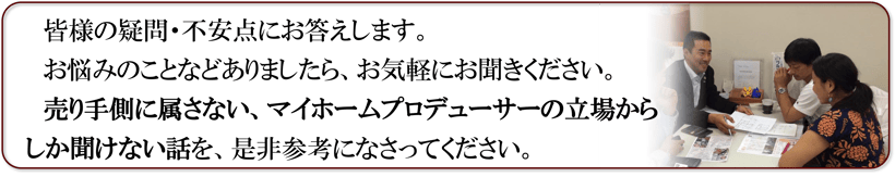 住宅会社が決まった後ほど、マイホームプロデューサーの存在を大きく感じて頂いています。